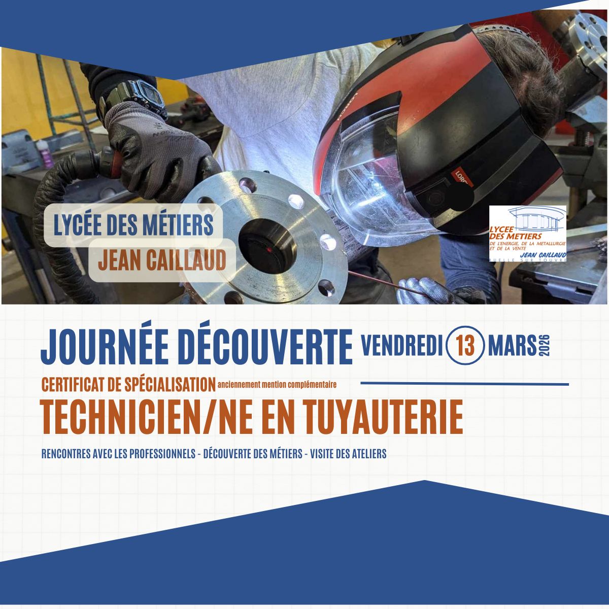 Le 13 mars 2026, l’UFA Jean Caillaud organise une journée dédiée à la découverte du Certificat de Spécialisation Technicien en Tuyauterie et des métiers techniques associés.