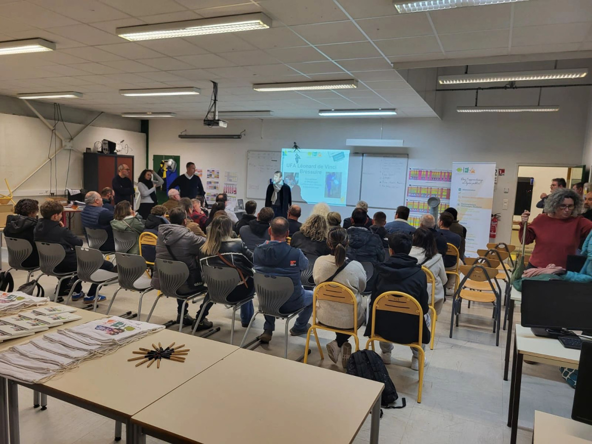 Jeudi 4 décembre 2025, l’UFA du lycée Léonard de Vinci (Bressuire) a accueilli parents des nouveaux apprentis et entreprises partenaires pour un temps d’échange autour des formations en chaudronnerie (BAC PRO TCI) et en installation thermique (CAP MIS/MIT, BAC PRO ICCER).